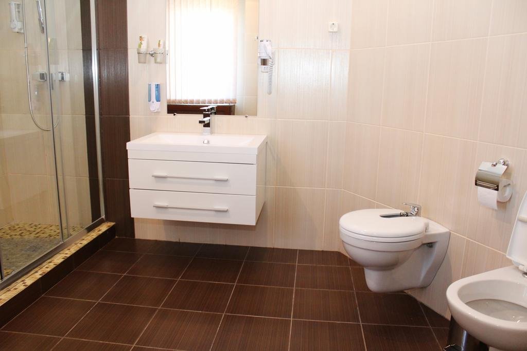 Номер с местом для работы, телевизором с плоским краном и ванной комнатой с душем и феном.
